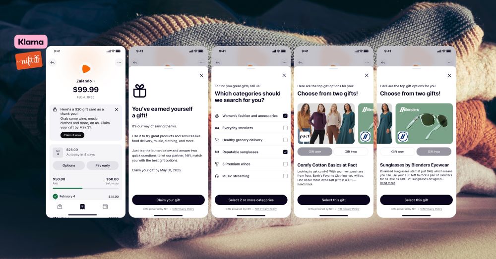 “We constantly look for innovative ways to elevate our customer experience by making shopping with Klarna more personal, pleasant and rewarding,” said David Sandstrom, Chief Marketing Officer at Klarna in a statement. “By partnering with Nift, we’re able to thank our customers for making a purchase with surprise, high-value gifts that introduce them to new brands, products and services that are curated specially for them.”